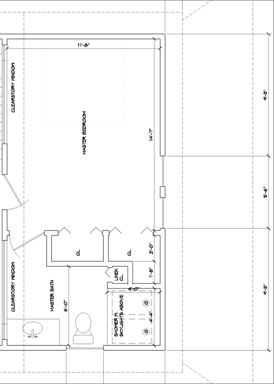 note: mouse over above bedroom/bathroom/roadside window to change drawing from existing 5’-6” center window space to 8’-0” center window space in rear wall. Return to Roadside Elevations |